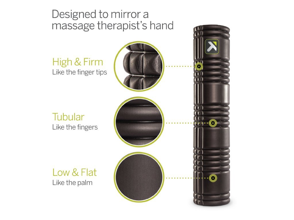 Penový valec TriggerPoint GRID s dutým jadrom sa skladá z patentovaného penového povrchu s rôznou hustotou, ktorý zaisťuje pevnú kompresiu stuhnutých svalov, uzlov a záhybov. Patentované zóny kopírujú pocit rúk maséra, ktoré pomáhajú podporovať tok krvi a kyslíka, kľúčových živín potrebných na obnovu svalov.